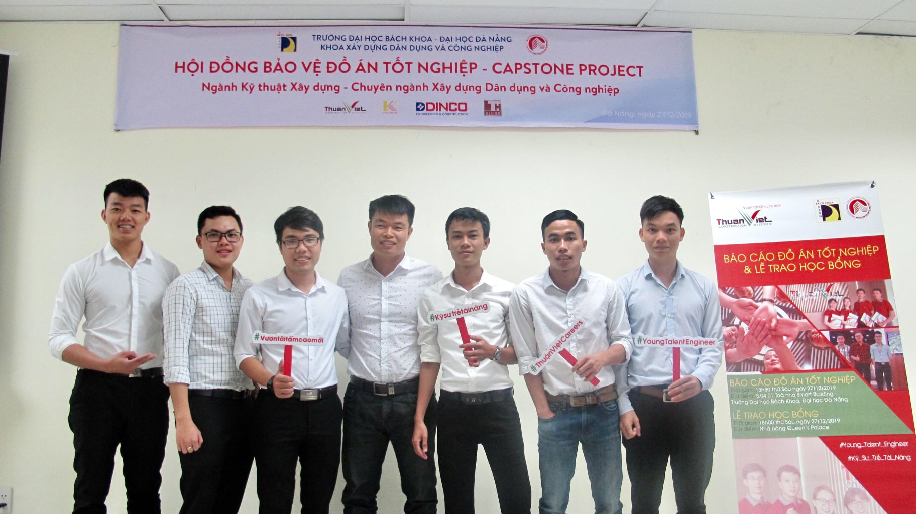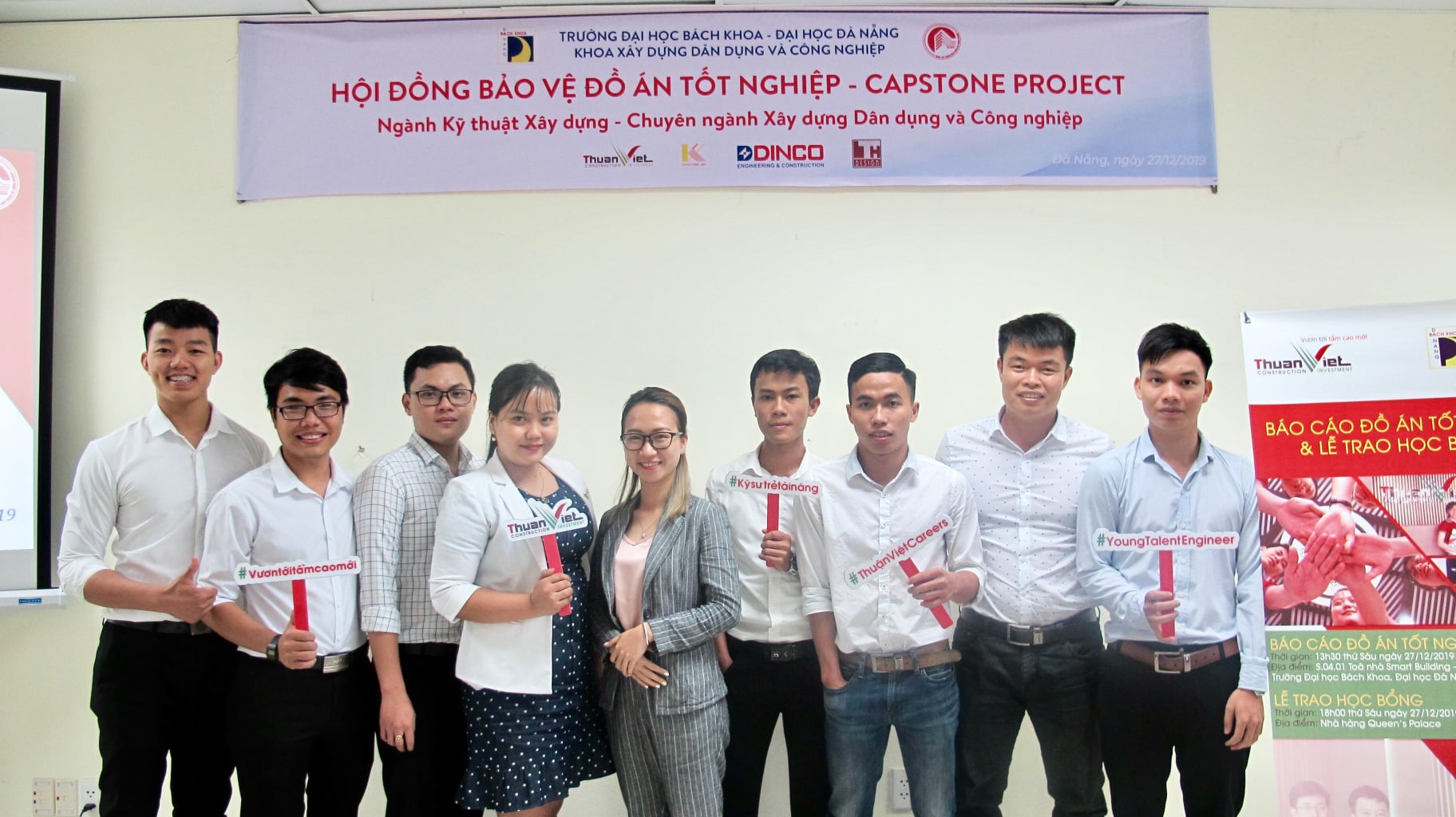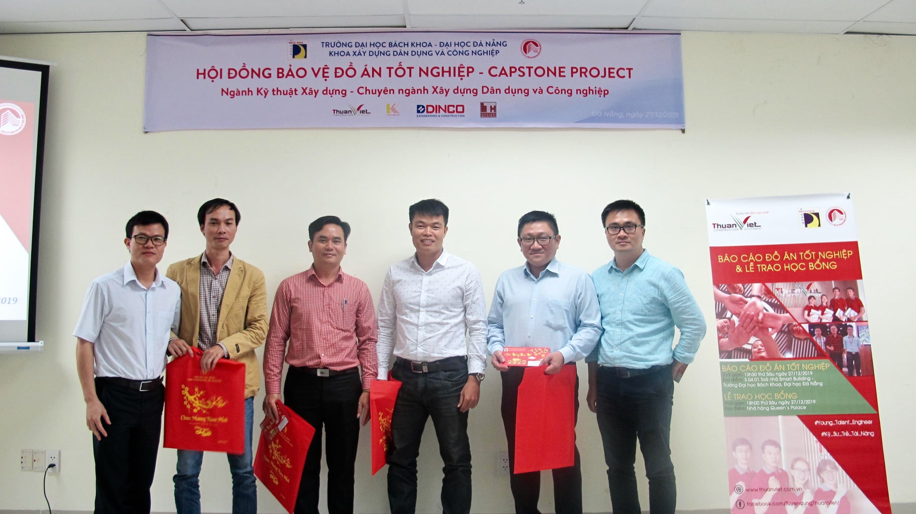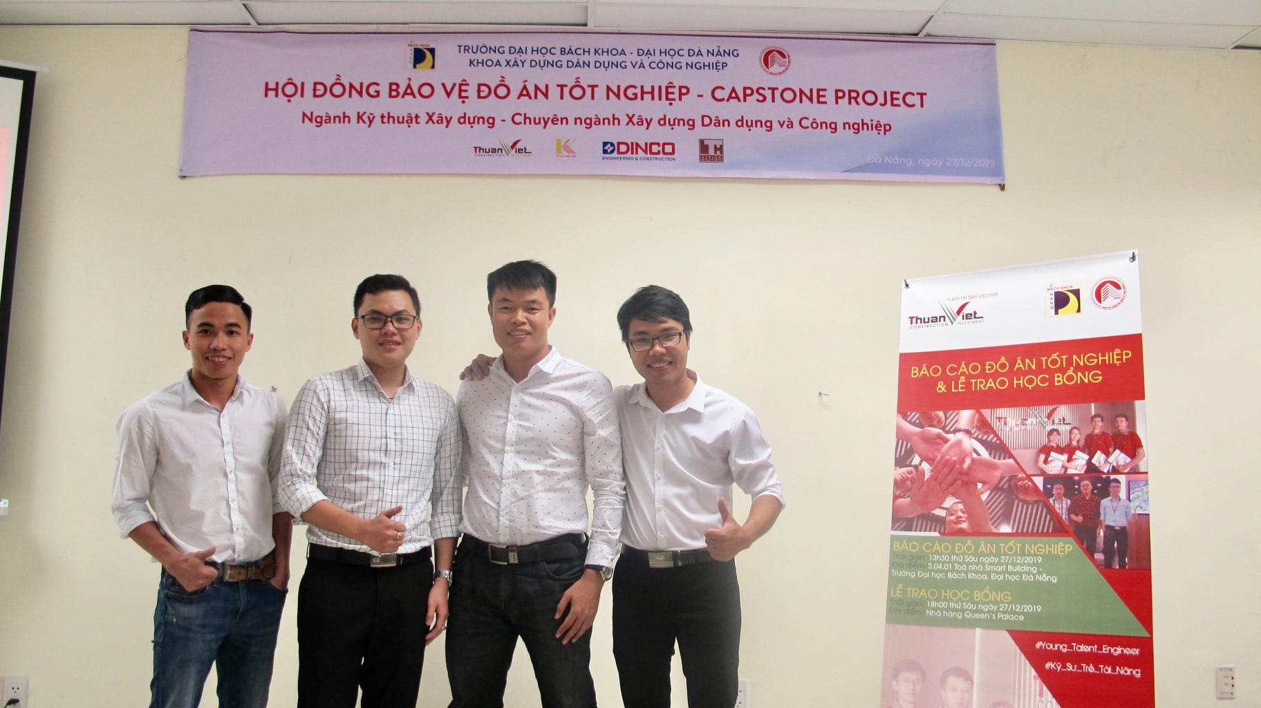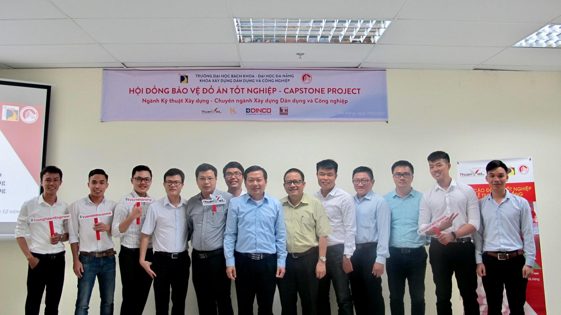 On December 27, 2019 at Room S.04.01 Smart Building, University of Science and Technology – University of Danang, the students who intern at Thuan Viet Construction and Trading Co., Ltd. successfully defended the Good Project Capstone Project. Participating in the report was the presence of Faculty of Civil & Industrial Construction and internship instructors of Thuan Viet Company.